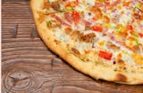 Pepperoni, sausage, mushrooms, onions and green peppers.